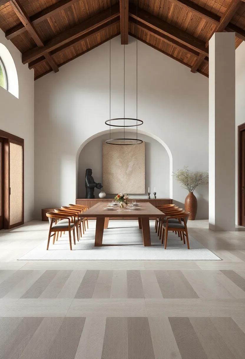 To further enrich the monastery-inspired dining room, consider incorporating elements that echo the architecture and decor of historical cloisters. Architectural details like arched doorways, exposed wooden beams, and stone finishes can add depth to your home. For the finishing touches, introduce lush greenery with potted herbs or simple floral arrangements in earth-toned vases, allowing nature to reconnect you with the peaceful outside world. A well-placed rug in muted tones can anchor the space while providing warmth underfoot.By carefully selecting each component, you can cultivate a dining area that not only serves as a gathering spot but also as a tranquil retreat, echoing the sacred serenity of age-old monasteries.