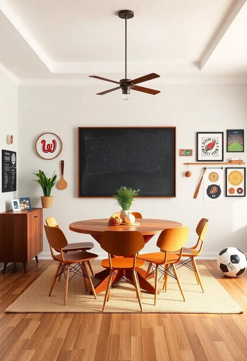 Elevate your dining space by incorporating elements that speak to your love of sports. Begin by selecting a color palette that reflects your favorite team’s colors; this could mean painting an accent wall in bold team hues or simply using table linens and dishware in matching shades. Add character with framed memorabilia, such as jerseys, signed photographs, or vintage sports equipment, incorporating them into a gallery wall to spark conversations among guests. Other ideas to consider include using themed centerpieces, like a mini basketball hoop for a casual game night or a vintage baseball bat as a quirky dining table accent.