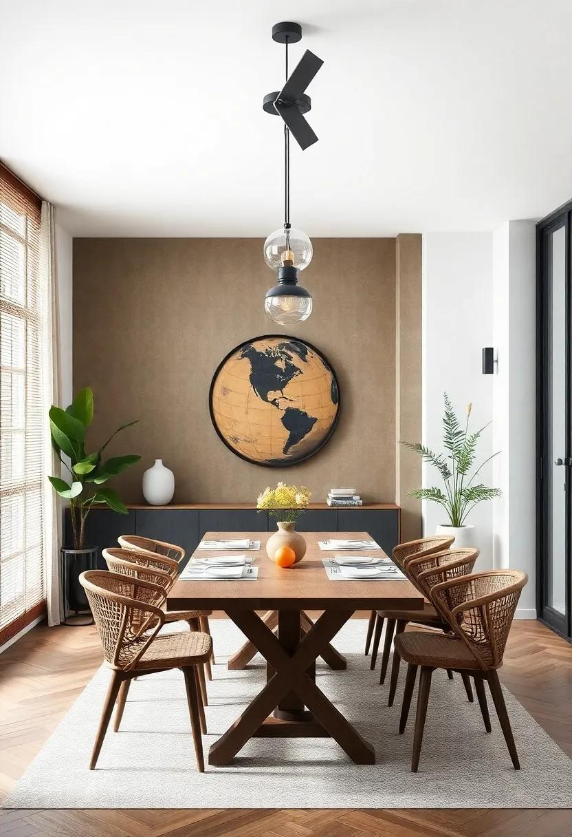 Infusing your dining room with elements from around the globe can create a dynamic and inviting atmosphere. Consider embracing bohemian textiles from Morocco with rich colors and intricate patterns, pairing them with sleek Scandinavian furniture that boasts minimalist lines. An Asian-inspired centerpiece, such as a low-profile table adorned with bamboo and stone accents, can add an earthy touch, while colorful Mexican ceramics bring vibrant hues and a playful spirit. Don’t shy away from African art pieces—tribal masks or woven baskets can lend a deep cultural narrative to your space, instilling a sense of authenticity and global awareness.