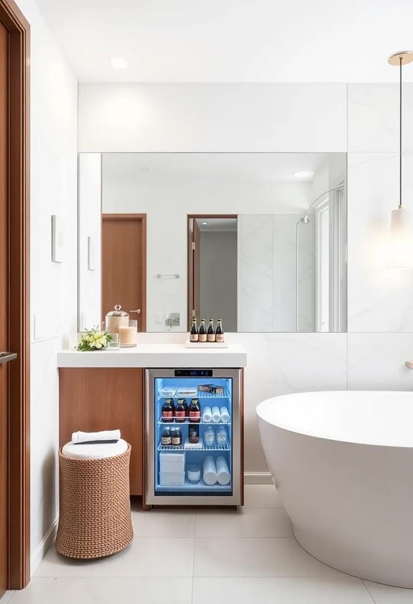 Adding a refreshment station not only elevates the ‍practical elements of your bathroom but also reflects an understanding of the finer⁤ details that contribute to a luxurious lifestyle. ⁢The​ presence of thoughtfully chosen⁢ drinks creates a bespoke ⁤experience, inviting ‌you to unwind, hydrate,​ and savor​ moments‍ of peace whether‌ you are⁢ soaking in the‍ tub or ​preparing for a busy day ⁢ahead. Consider accessorizing your mini ‌fridge with ⁣elegant glassware and a ⁤tray, turning ​this practical feature ​into ‌a ⁢stylish ‌focal point in your‌ serene sanctuary.