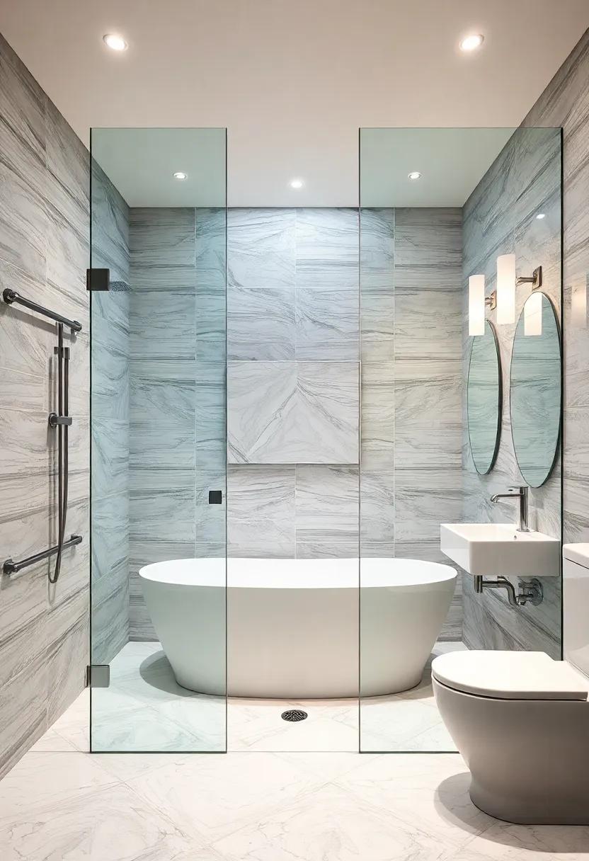 Materials ⁢matter when selecting your tiles. Consider options like​ ceramic, porcelain, or⁢ even​ natural stone to⁢ elevate your bathroom’s ambiance. The texture and finish of your tiles can also play a role in⁣ the overall ‍feel;⁤ matte tiles offer a soft, ‌understated elegance, while glossy finishes enhance brightness ‍and depth. For a polished look, try ⁤incorporating tiles⁤ in unexpected areas such as the shower floor or beneath‍ a ‍freestanding​ tub.Combining different‍ shapes—such as hexagons and rectangles—can further enhance visual ​interest and create‌ a layered‌ effect that ties all​ elements⁣ of your​ bathroom⁤ design together.