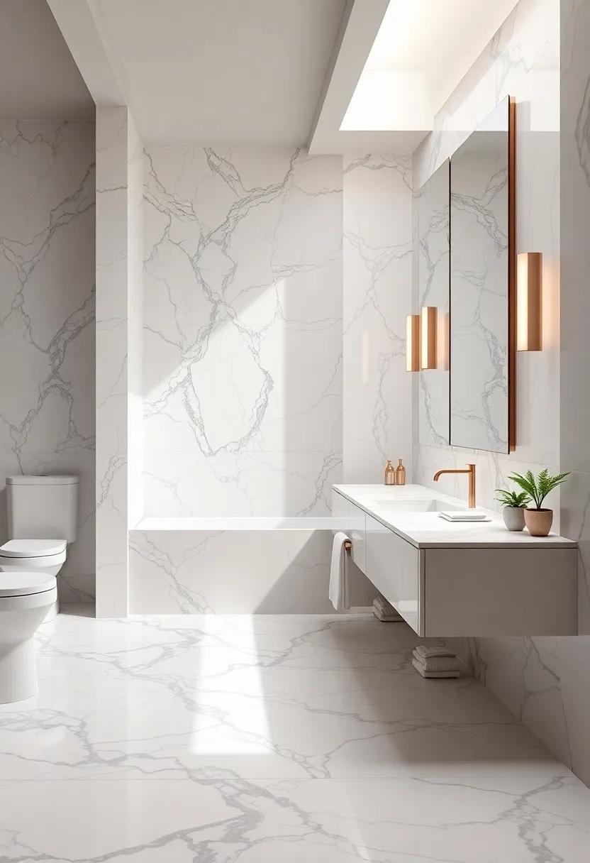 Indulge in the luxurious allure of marble for your bathroom surfaces. ⁢With ‍its striking patterns and unique veining, each slab is a masterpiece that transforms ordinary spaces into⁣ opulent retreats.Think⁢ about using marble for​ both ⁢countertops‍ and floors to create⁤ a unified ⁤look ⁣that radiates sophistication. The natural cooling properties of⁤ marble ​not only add a touch of elegance but ​also ‍enhance the comfort ⁤of your​ haven.⁤ Imagine stepping into‌ a serene environment where ⁣every detail speaks of⁤ high-end luxury,‍ making‍ your daily⁤ routines ⁢feel⁢ like indulgent⁢ spa moments.