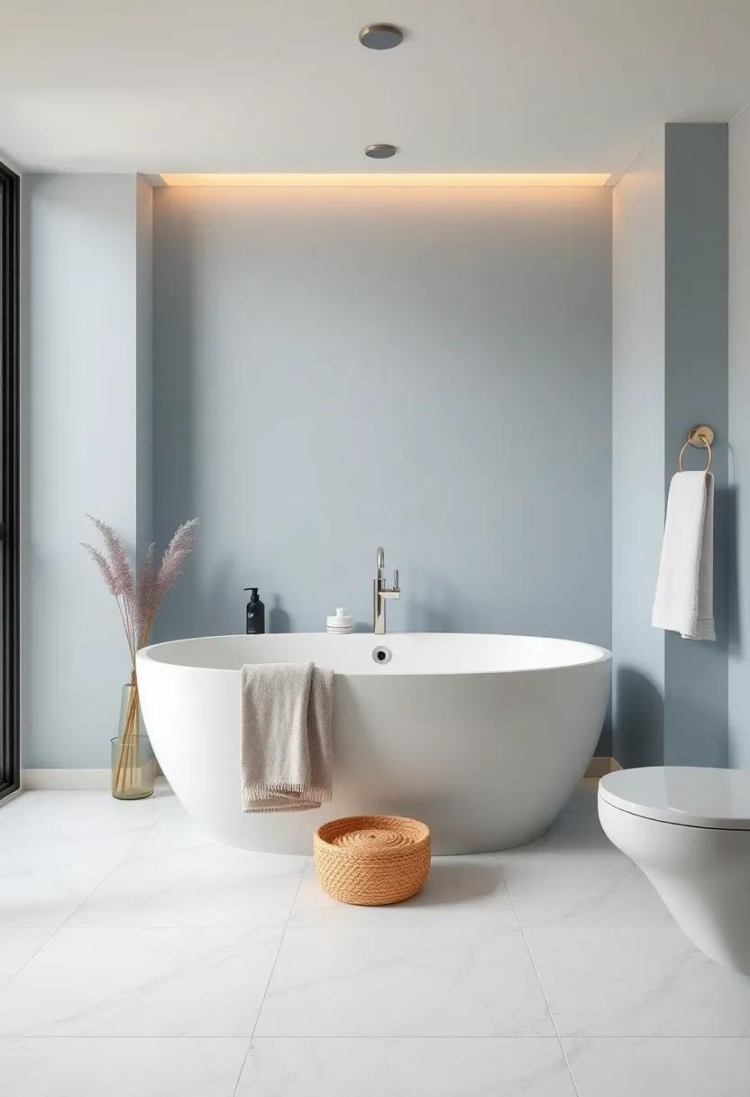 Creating‌ a bathroom that feels like ⁢a peaceful⁤ retreat begins with the selection⁤ of a carefully ​curated color palette. Opt‍ for soft blues ​ that mimic ⁤the⁣ calmness of clear skies ⁢or tranquil waters, instilling ‌a sense of serenity. Pair these hues⁢ with earthy neutrals like warm beiges or⁣ gentle grays to ground the design, ⁣making the⁣ space⁤ feel more inviting. This harmonious blend not only elevates ‌the ‍aesthetic⁣ appeal ​but also promotes relaxation, making your daily rituals, such ⁣as ‌baths or skincare routines, ⁢feel indulgent and​ restorative.
