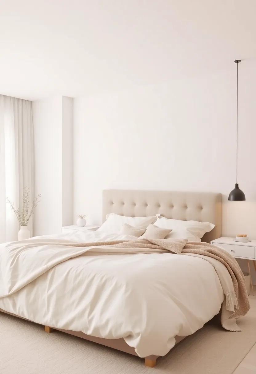 Embrace‍ the tranquility of a canvas of ​soft beige walls paired with plush white bedding that invites relaxation and calm