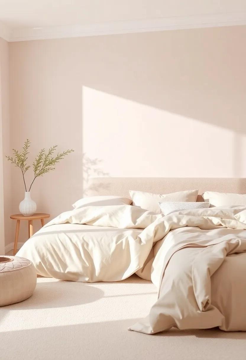 Imagine stepping into a sanctuary where calmness envelops you the moment ‌you cross ⁢the threshold. The soothing aesthetic of soft beige ​walls creates an inviting backdrop that‍ whispers relaxation. Paired with luxuriously plush white bedding, ⁤this color palette works in harmony ​to enhance the serene ​atmosphere of your bedroom. Textures come into‌ play as⁤ soft linens caress your skin, ‌inviting you to unwind after a long day. shadows dance gently across⁢ the walls, while warm, natural light filters through sheer ⁤curtains, adding to the peaceful vibe. The result is⁤ a tranquil escape⁤ that nurtures both your body and mind.