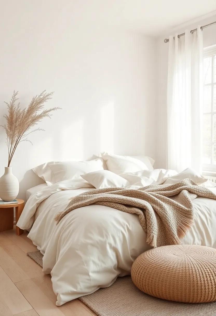 By embracing both linen and wool in your neutral bedroom, you create a sanctuary that speaks to serenity, allowing you to slip into comfort while enveloped in a cozy chic ambiance.