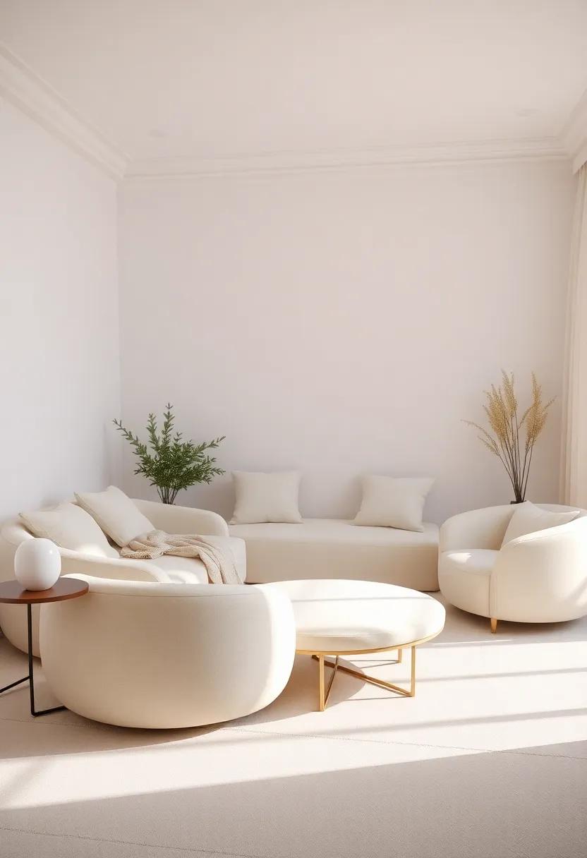 A distinct monochromatic scheme, where varying shades of white and cream coexist, promotes a dreamy and tranquil atmosphere