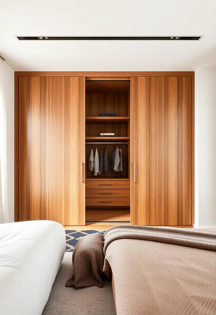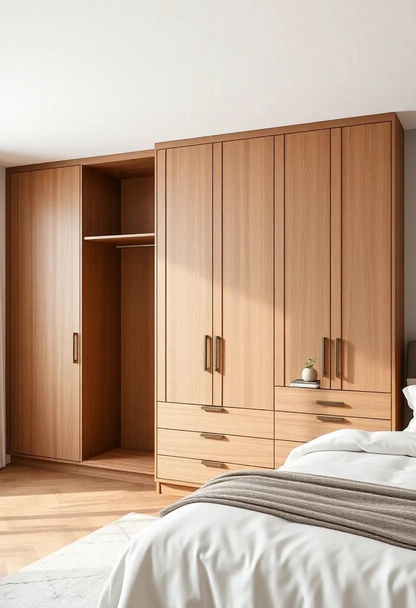 Transform your bedroom into a sanctuary with the captivating interplay of dark and light woods. This design technique effortlessly creates visual interest, drawing the eye to a harmonious blend of contrasting tones. Imagine a wardrobe in rich, espresso-stained wood, paired with pale oak accents that infuse warmth and invite serenity. This remarkable combination not only enhances your storage space but also elevates the overall aesthetic of your room. By incorporating different wood textures, you add a layer of sophistication that can complement various décor styles from modern minimalist to rustic chic.