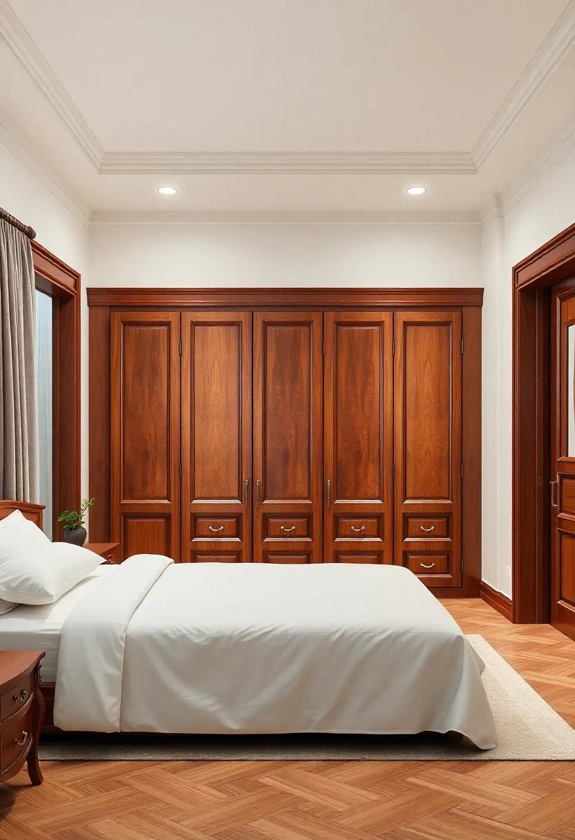 Classic Elegance: A timeless wardrobe crafted from rich mahogany, complete with detailed moldings and a sophisticated finish