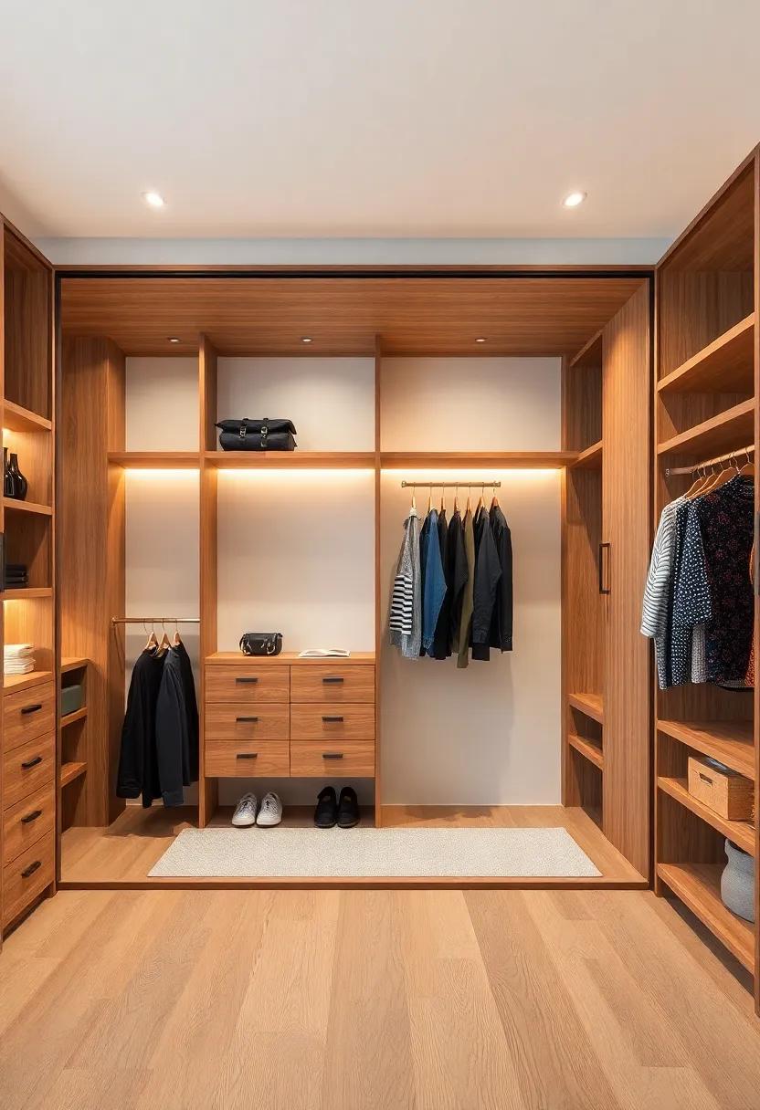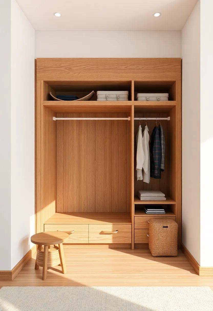 Scandinavian Serenity: Light,airy designs using pale woods and minimalist principles create an inviting and functional wardrobe