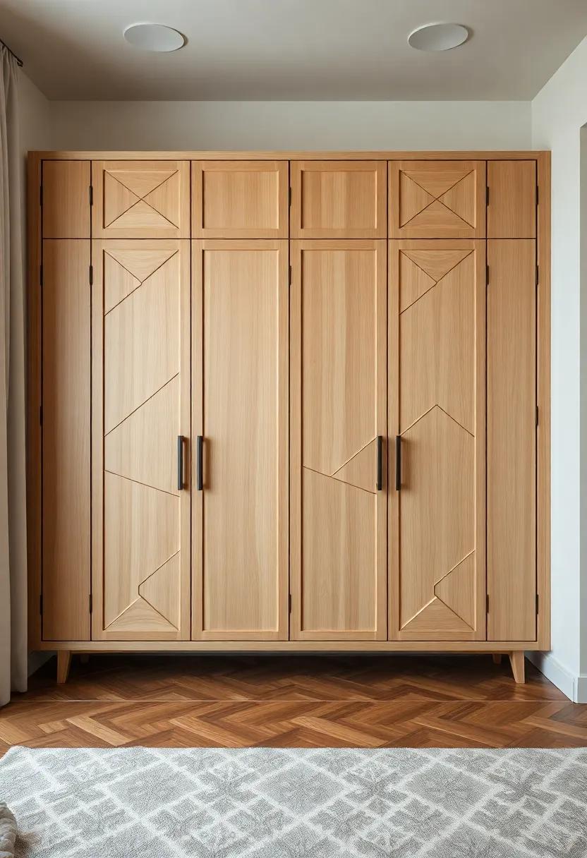 Geometric Genius: A wardrobe adorned with geometric patterns and shapes carved into the wood, adding visual intrigue