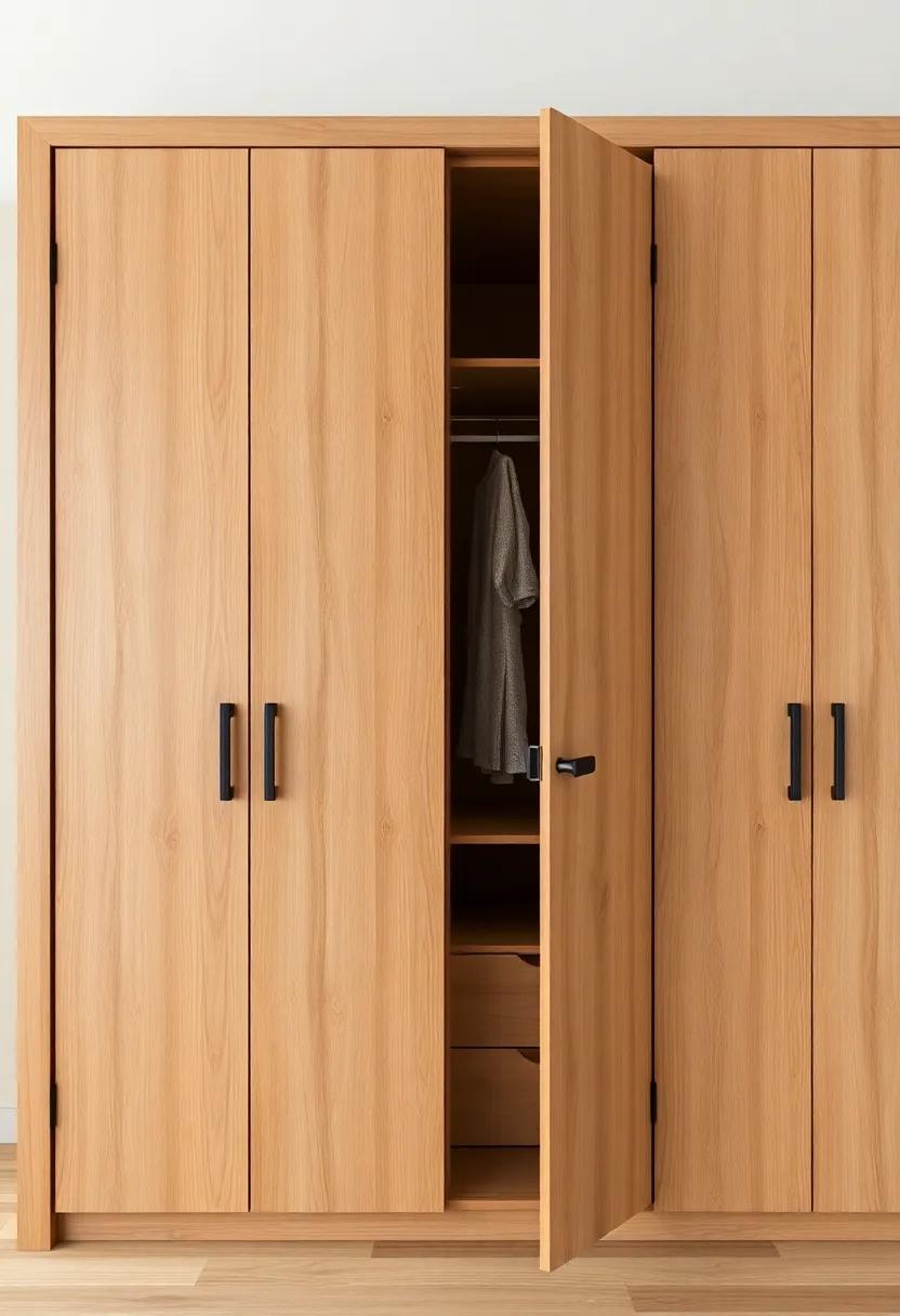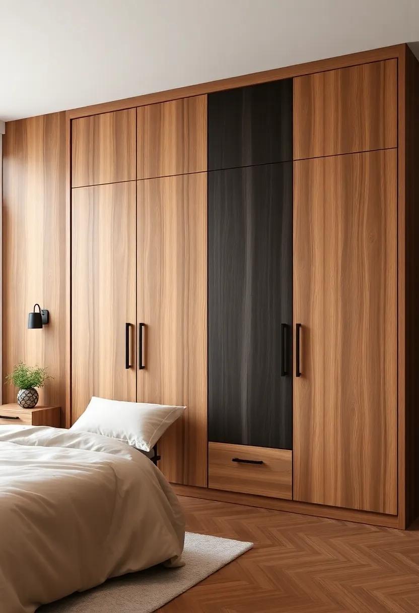 - Accent Panels: Use light wood for the wardrobe doors while keeping the frame in a darker hue.