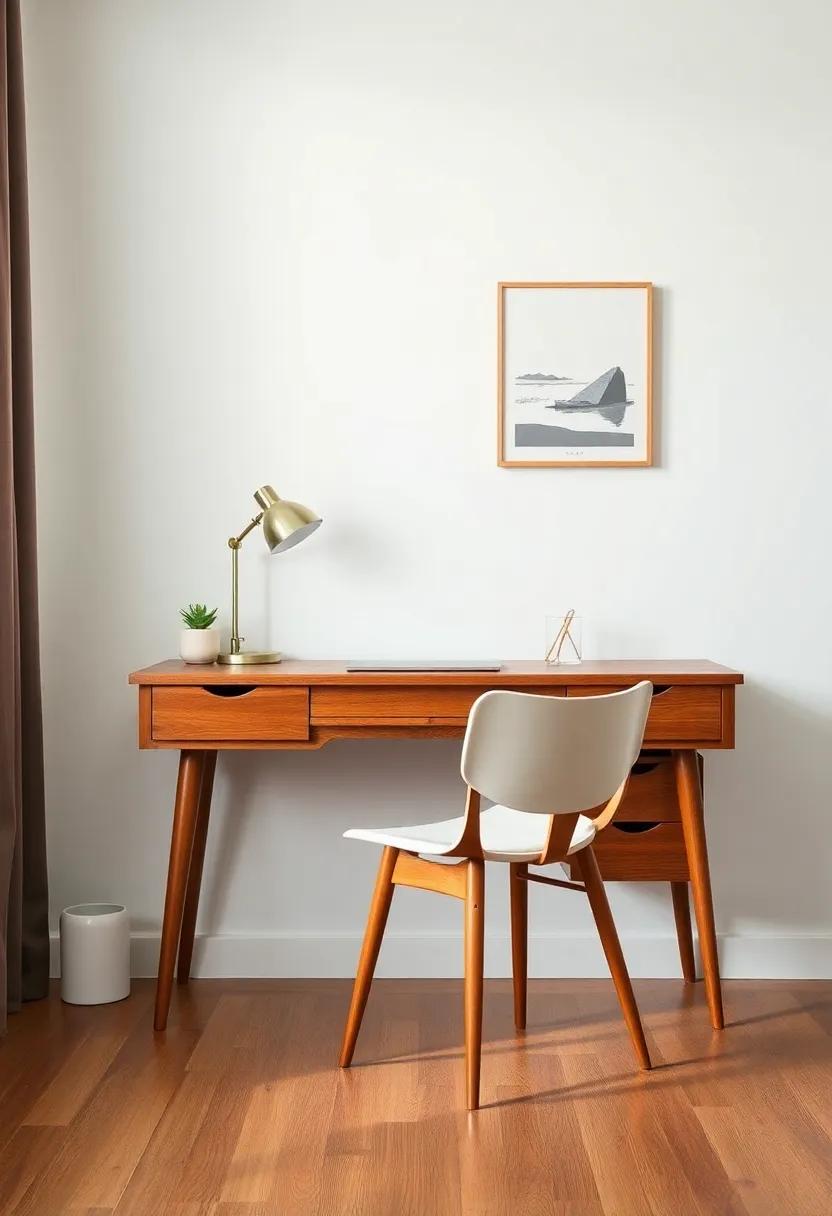 Danish Teak Desk: A minimalist Danish desk adds a sophisticated touch while providing ‍a practical workspace ‌that complements the retro theme