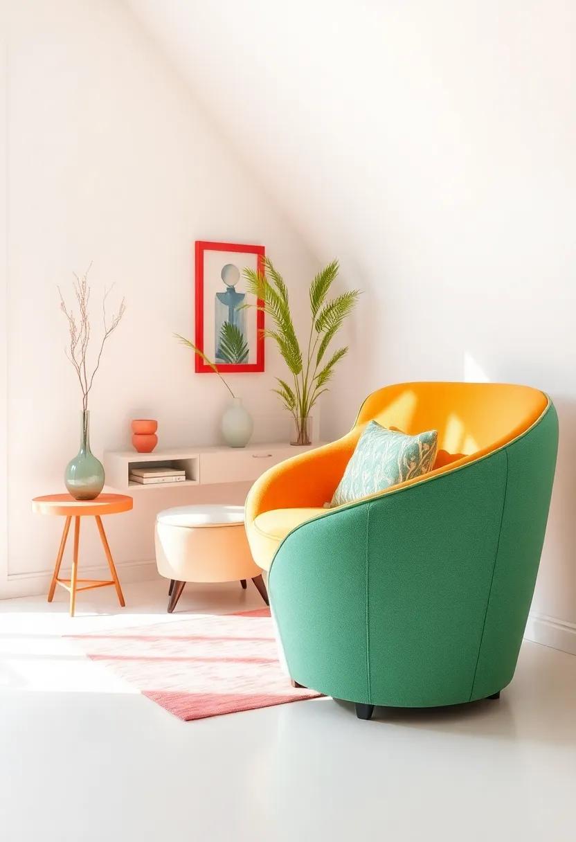 Retro Lounge Chair: A curvy, brightly colored lounge chair can⁣ serve as‍ the perfect reading nook, inviting you ⁢to unwind ‌and relax