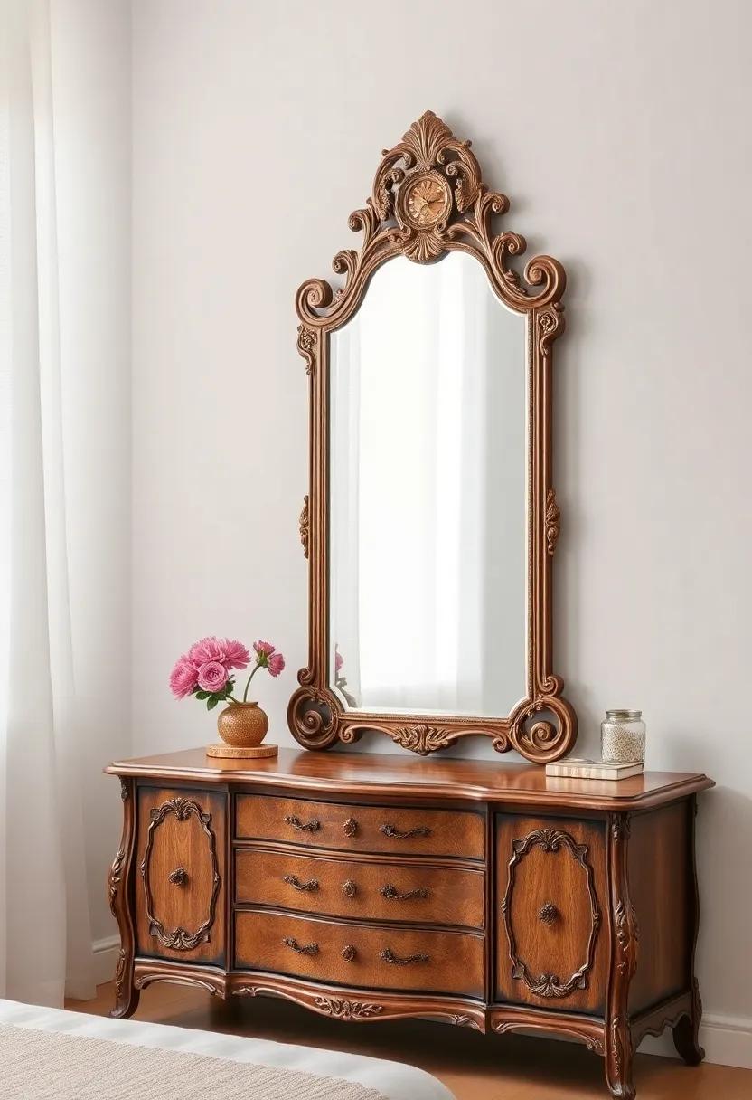 Antique Dresser: An intricately carved antique‍ dresser not only offers storage but also serves as​ a⁣ statement piece, brimming with ⁣history and character