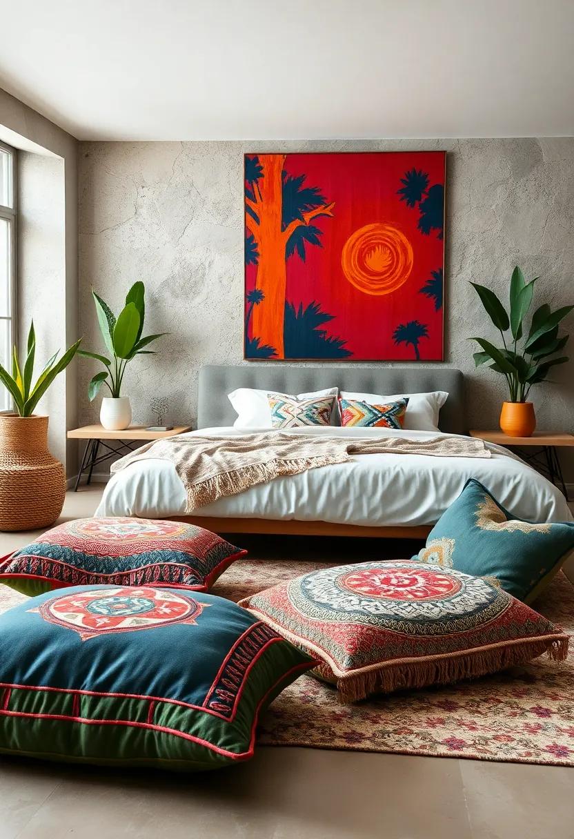 For those looking to infuse their retro bedroom with a relaxed, bohemian touch, floor cushions are an excellent choice. These vibrant, oversized cushions not only provide versatile seating but also serve as stunning decor pieces. Available in various patterns and fabrics, they can effortlessly elevate the visual appeal of your space. consider choosing cushions with a mix of mandala prints, ethnic motifs, or bold color palettes, as they add an ethnic flair that complements vintage furniture beautifully.