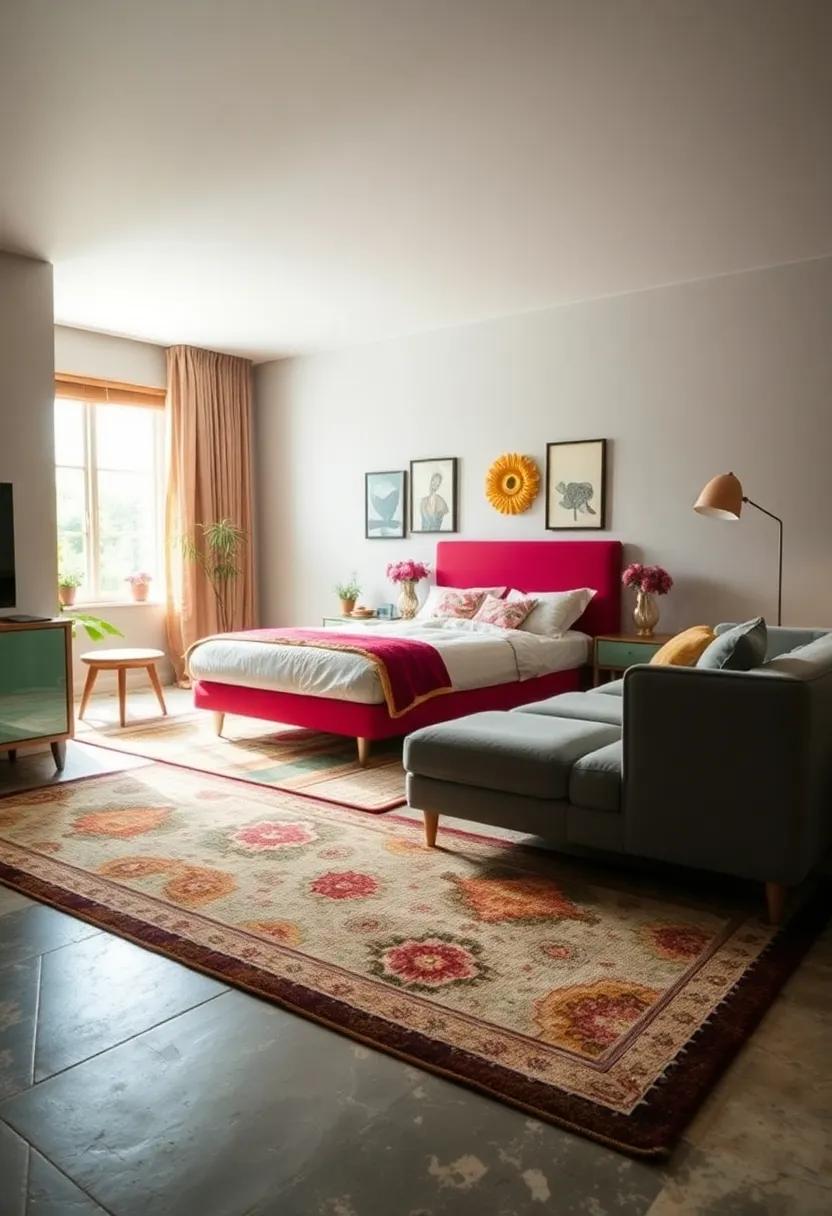 Transform your bedroom into a vibrant sanctuary with colorful area rugs that exude charm and personality. These lively pieces not only capture attention but also seamlessly tie together various elements of your vintage-themed decor. Consider rugs adorned with bold geometric patterns, floral motifs, or whimsical designs that echo the retro aesthetics of the past, creating a nostalgic yet modern vibe. Rich colors like fiery oranges, deep blues, and sunny yellows can dramatically alter your space, adding depth and warmth that draws you in.