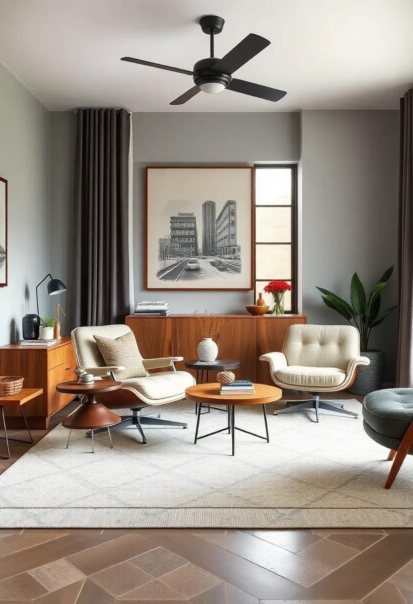 Eames-inspired lounge chairs are a testament to the blend of comfort and aesthetic that defined mid-century modern design. Characterized by their sleek lines and organic shapes, these chairs effortlessly merge functionality with style. Whether it’s the iconic molded plywood or the luxurious leather upholstery, these pieces serve not just as seating but as striking focal points in any retro bedroom. Their ability to invite relaxation while enhancing the decor makes them an ideal choice for creating a cozy reading nook or simply adding a splash of character to your space.