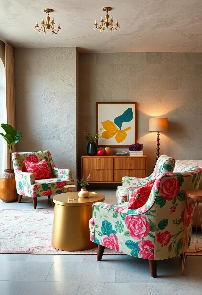 Floral-Print Upholstered Chairs: Channel the playful spirit of the 60s with vibrant, patterned seating that invites relaxation in your bedroom