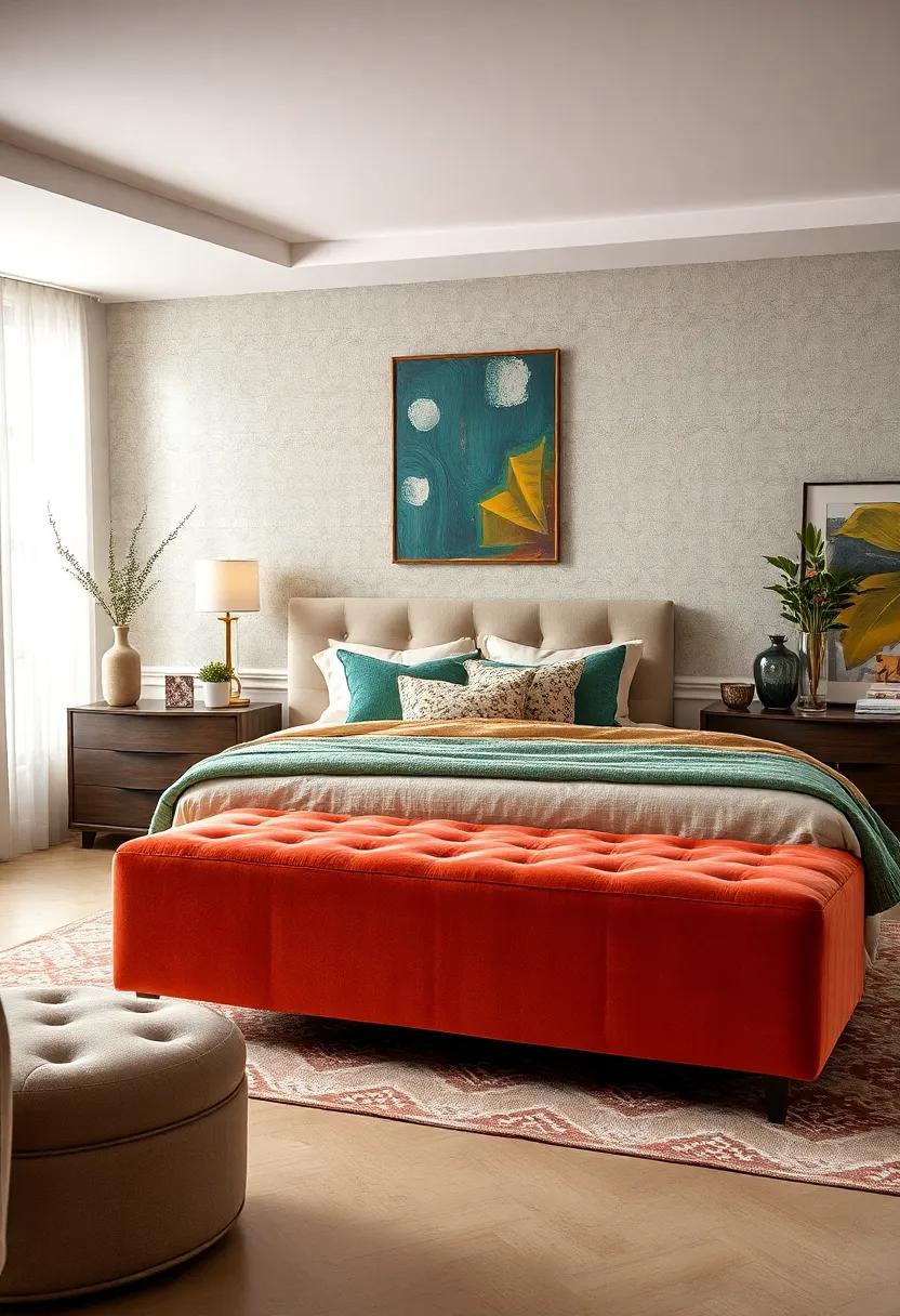 Velvet Upholstered Benches: Luxurious textures create a stylish touch, providing seating and storage at the foot of your bed