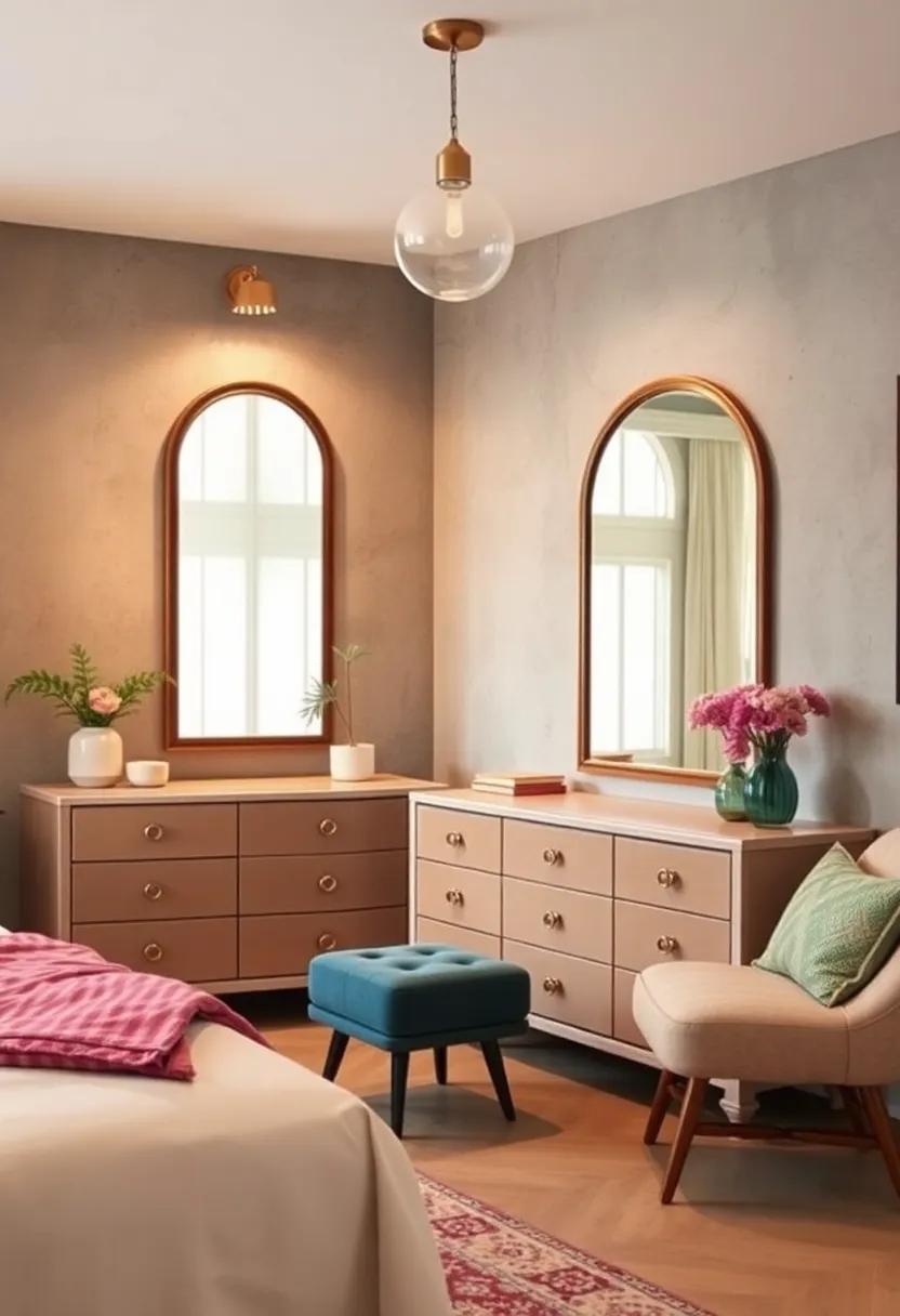 Embrace the nostalgic charm of mid-century modern dressers, which effortlessly blend function and style in your retro-inspired bedroom. Characterized by their sleek lines and minimalist designs, these pieces often feature tapered legs and spacious drawers that make organization a breeze. The rich wood tones—ranging from warm walnut to light oak—add a natural warmth to any space, creating a cozy atmosphere that invites relaxation. Their versatility allows them to pair well with vibrant accents or to stand alone as eye-catching statement pieces.