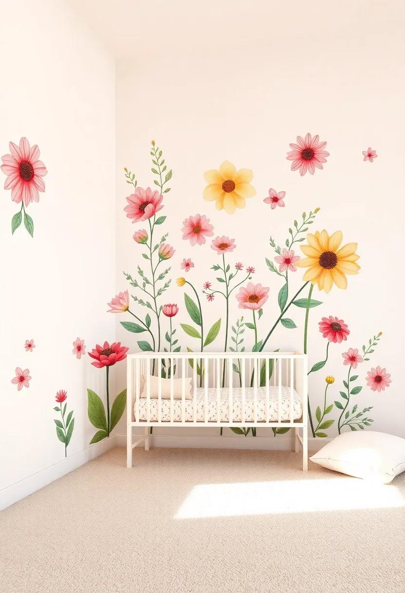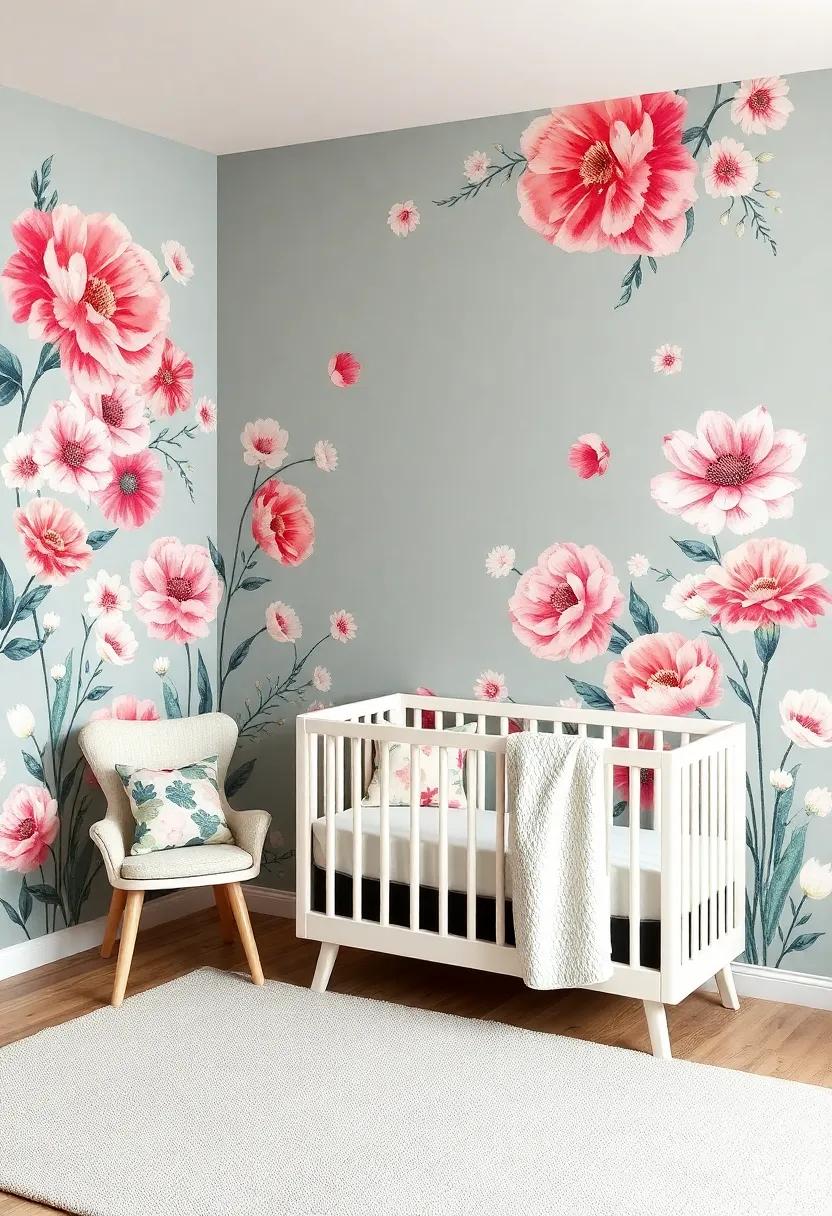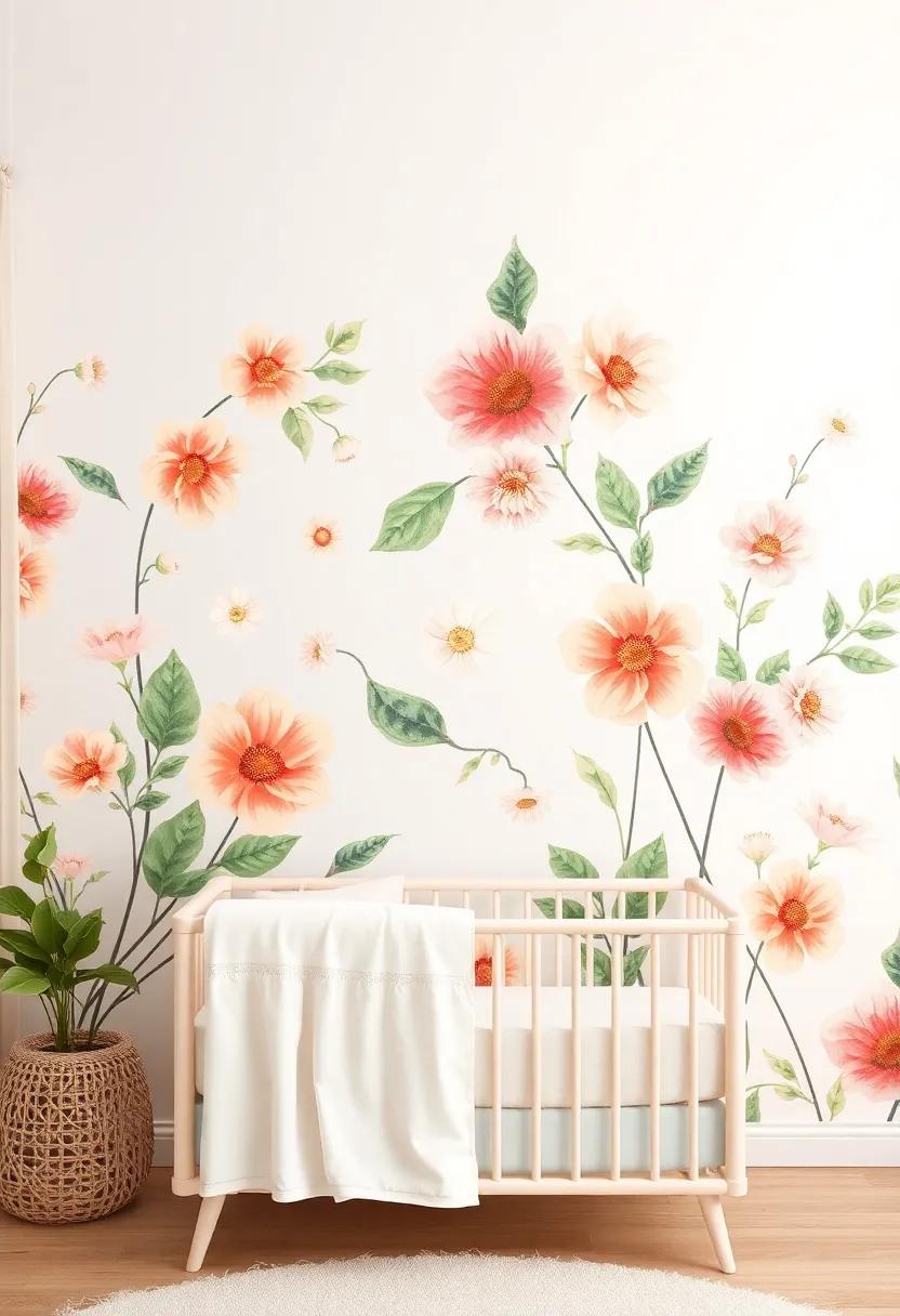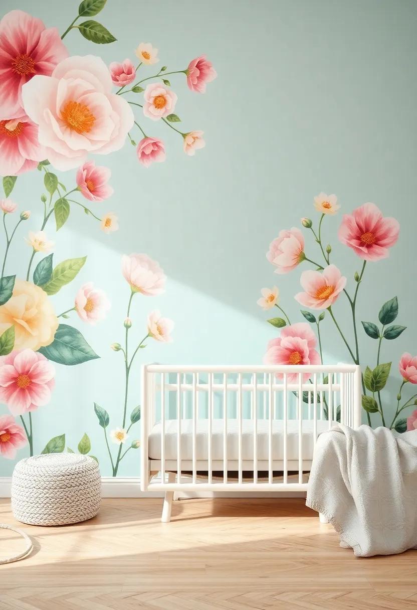 Consider the following approaches when integrating floral illustrations into your nursery design: