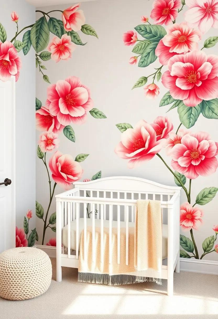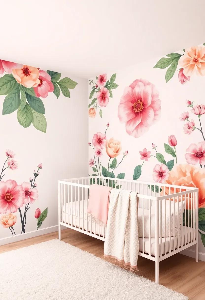 To make a small nursery feel larger and more welcoming, opt for floral designs that extend from the floor to the ceiling. This vertical approach draws the eye upward, enhancing the sense of space. Additionally, pairing murals with complementary furniture and decorative accents can amplify their effect. Textures such as plush rugs and soft bedding in nature-inspired tones can help ground the lively artwork. A harmonious blend of floral art with thoughtfully selected elements can truly elevate the design of a girl’s nursery into a blooming sanctuary.