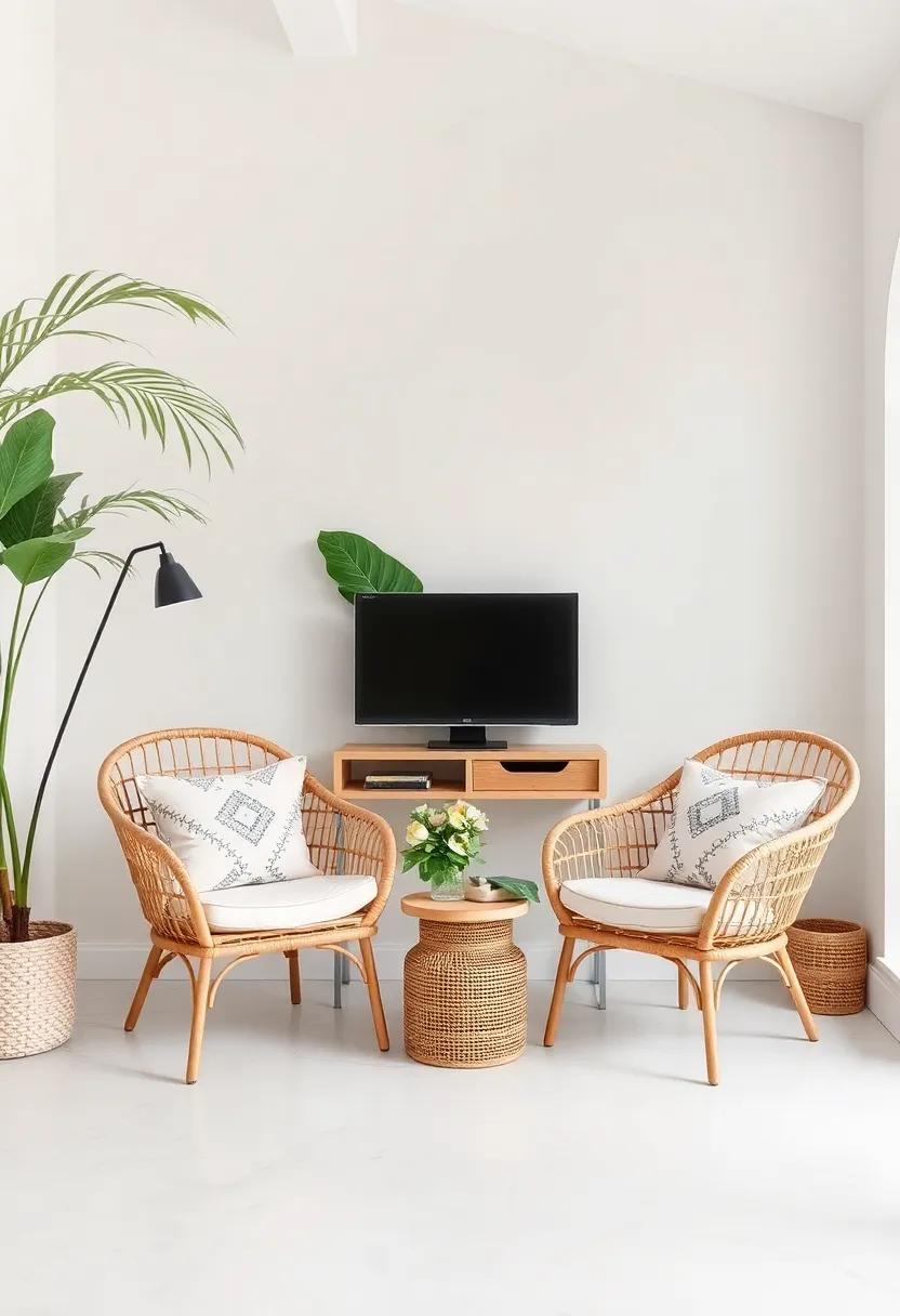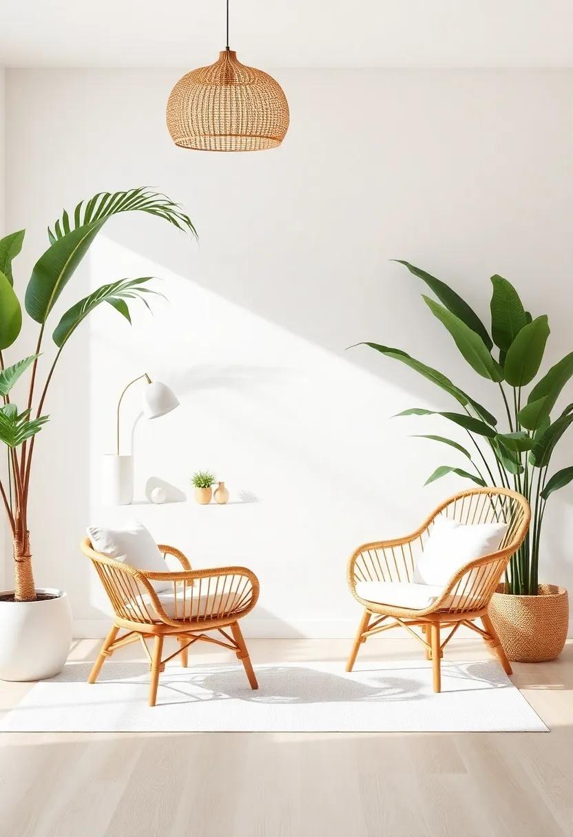 • Pair rattan‌ chairs with light-colored, airy fabrics for cushions.