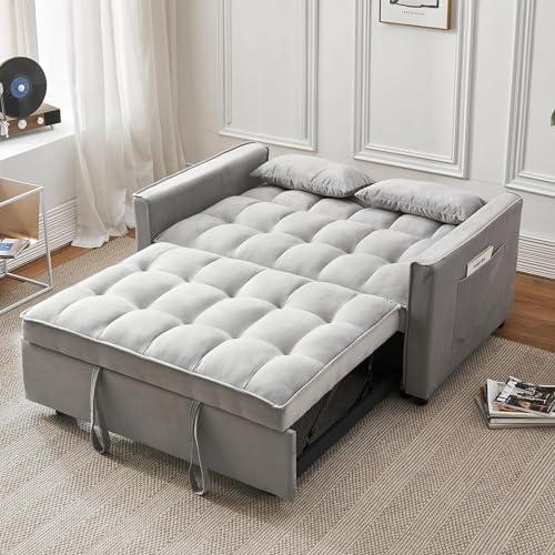 The versatile furniture piece features a sleek design that easily transforms from a sofa to a bed, making it perfect for both living rooms and bedrooms. With dimensions of 38.5″D x 54.8″W x 30.5″H, and a sleeper size of 70″D x 46″W x 24″H, this sofa bed accommodates two adults comfortably, supporting a maximum weight capacity of 500 pounds. The high-quality velvet fabric ensures a luxurious feel while being resistant to pilling and wrinkles. An adjustable backrest allows you to find the ideal position for reading or relaxing, while a convenient side storage pocket keeps your essentials, like remote controls and books, close at hand.