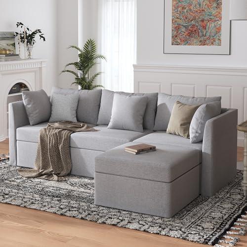 When considering the benefits of this modular sofa, its easy installation and light gray color make it a stylish and functional addition to any home. However, some may find the cushions could be firmer than expected, which might not suit everyone’s preference for plush seating. Although it is designed for compact living, the rearranging of pieces might require effort to maintain stability in certain configurations. this sectional strikes a balance between aesthetics and convenience, making it an appealing choice for those in need of adaptable furniture.