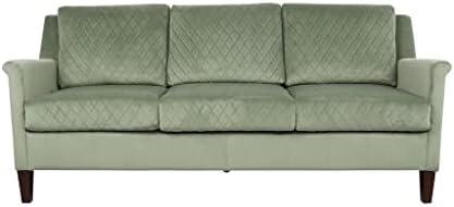 This sleek velvet upholstered sofa not only enhances your living space but also provides remarkable comfort. With a solid plywood frame, it is designed to withstand the test of time, making it a durable choice for any room. The plush upholstery and wide armrests, crafted from high-density laminated wood and thicker foam, invite you to relax and unwind. Solid gold metal legs add an elegant touch while ensuring stability and resistance to rust or paint peeling, ensuring that your furniture remains visually appealing and structurally sound.