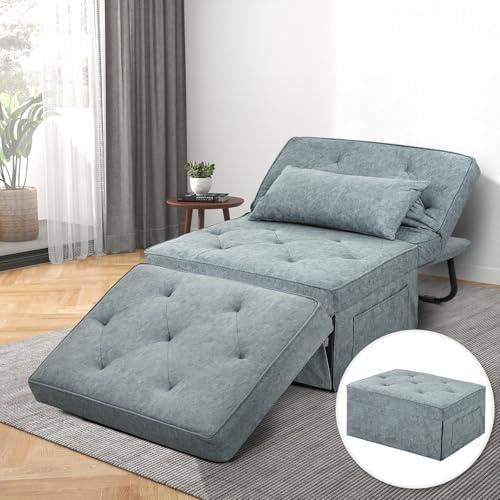 This multifunctional piece is designed to cater to diverse needs, effortlessly converting into a chair, a recliner, or a cozy bed for unexpected guests. With an adjustable backrest that offers three angle settings, it provides optimum comfort whether you are reading, watching TV, or napping. The sofa bed’s robust wood and metal structure supports up to 300 lbs, ensuring durability, while the soft linen fabric delivers a comforting touch. The inclusion of a side storage pocket and a pillow further enhances its practicality, making it an ideal addition to any apartment or studio.