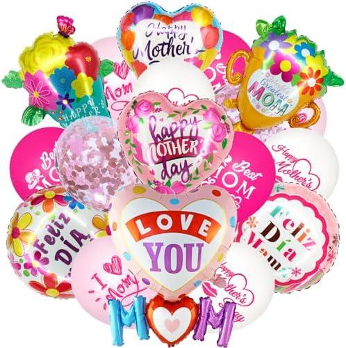 This vibrant balloon set is the perfect way to add a festive touch to your celebrations. With a variety of shapes and colors, including heart-shaped designs and cheerful phrases like “Happy Mother’s Day,” these balloons can elevate any décor. Made from durable latex and shiny aluminum foil, they are designed to be easy to inflate either with air or helium. Additionally, the micro-sealed feature helps ensure that they remain inflated longer, allowing you to enjoy the decorations throughout your special day. The set includes various items, such as confetti balloons, trophy balloons, and flower designs, providing plenty of options for creative displays that keep the festive spirit alive.