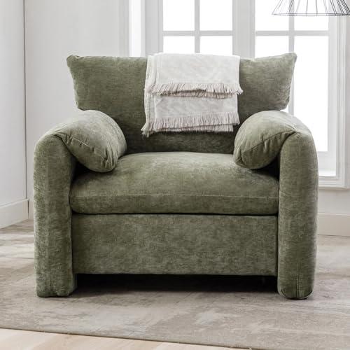 Introducing an elegant yet functional seating solution that enhances your living room or bedroom with its modern charm. This oversized armchair features a plush, pillowy design that invites you to sink in and relax. The soft Chenille upholstery is not only stain-resistant but also offers a cozy feel that complements any décor. With dimensions of 38.6” wide, it provides ample space for lounging, whether you’re enjoying a book or entertaining guests. The sturdy solid wood frame ensures durability, while its weight capacity of 330 lbs makes it suitable for various users.
