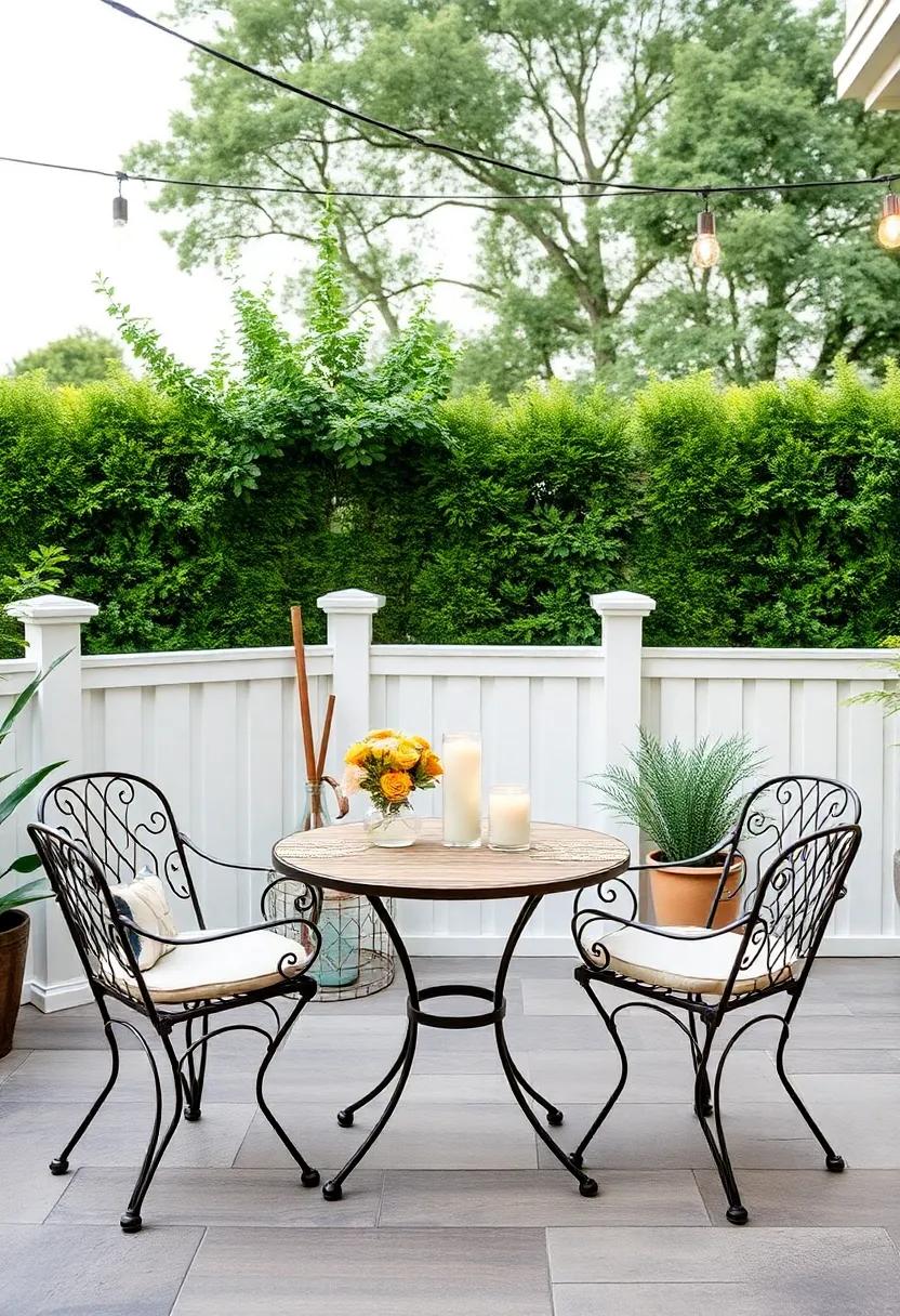 - Cozy Corner Nook: Tuck a bistro set into a corner with a selection of potted herbs or flowers for a secluded yet stylish spot.