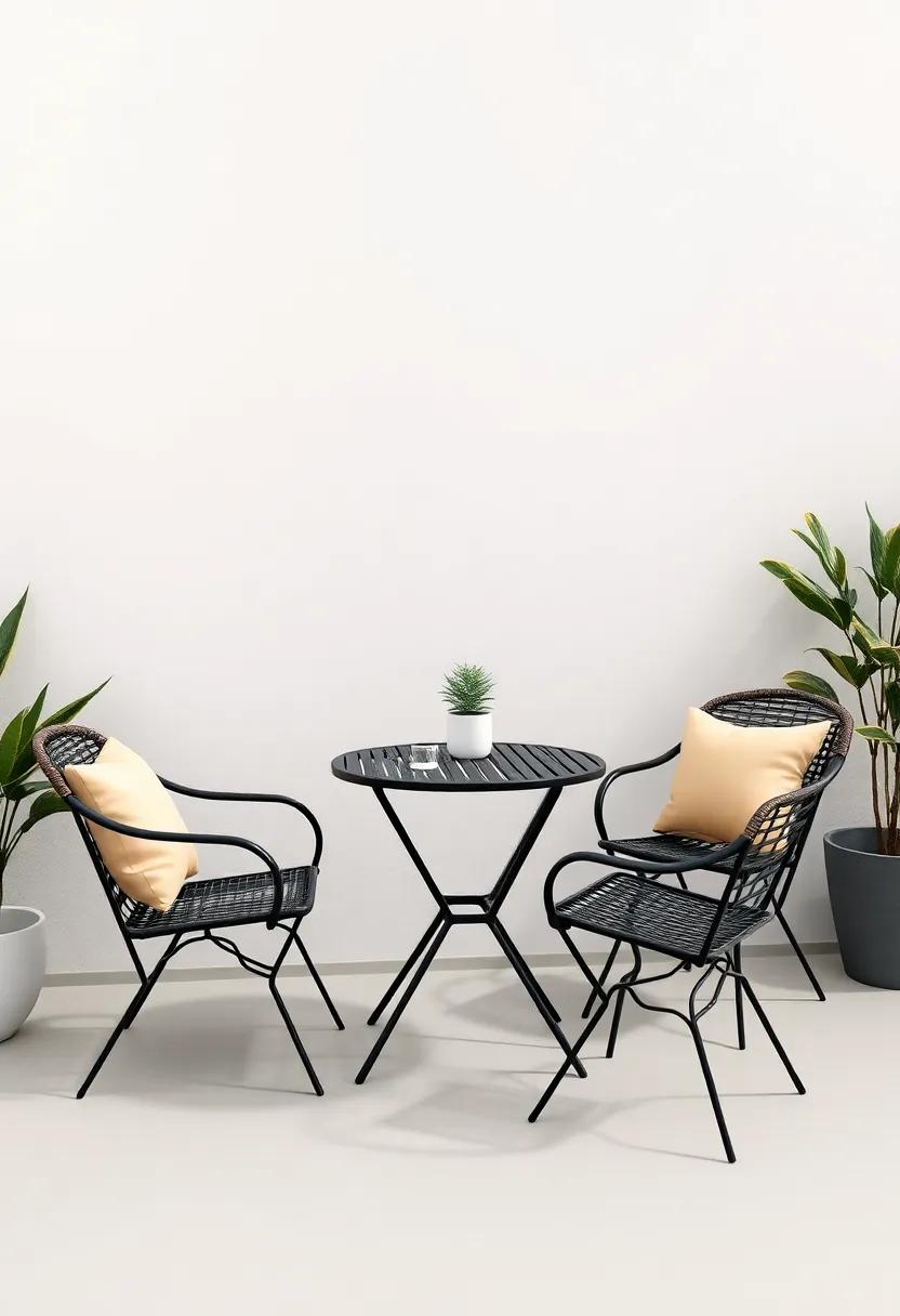 For a more dynamic layout, think about mixing and matching your bistro set with other furniture pieces. Combine the bistro table with a low-profile sofa or a few poufs to accommodate different seating preferences. Add greenery around your seating area with potted plants or planters that create a natural barrier and enhance privacy. If you’re aiming for a whimsical look, consider using a patchwork of textiles on the table, such as a vibrant tablecloth paired with mismatched dinnerware, for a relaxed, bohemian vibe. Here’s a quick table to spark some ideas for your layout: