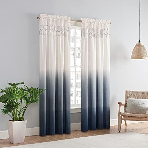 These beautiful window drapes embody chic sophistication, featuring a striking ombre effect that transitions from a vibrant base to a more subdued top. The color-coordinated geometric embroidery along the top border adds an artistic touch, making them a stylish addition to any living space. With a practical 3-inch rod pocket design, installation is quick and straightforward—perfect for those who appreciate convenience. These curtains are crafted from 100% cotton and filter light while providing privacy, making them suitable for various rooms in your home.