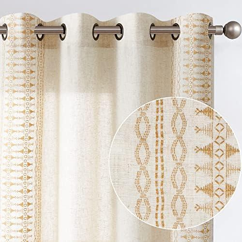 These beautiful light-filtering window treatments blend a refreshing yellow hue on beige with intricate embroidered designs, adding a touch of bohemian elegance to any space. Each panel, measuring 63 inches in length and 50 inches in width, is made from a soft, durable mixture of 15% linen and 85% polyester. The curtains are perfect for various applications in your home, whether in the living room, bedroom, or even the office, offering versatility by being hung alone or layered for added style. They filter sunlight beautifully while also providing privacy without completely blocking out natural light.