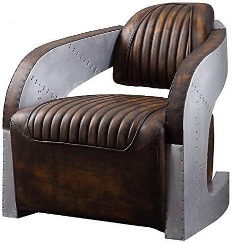 This unique chair brings a blend of vintage elegance and industrial chic to any living space. Its aerodynamic curves, wrapped in smooth leather, offer both comfort and aesthetic appeal, reminiscent of a classic bomber jacket. The aluminum patchwork exterior, adorned with exposed steel screws and lightly distressed accents, imparts a rugged charm, making it a conversational centerpiece. Designed to mirror the style of early aviator chairs, the low seat and raked back ensure a relaxed seating experience, while its solid hardwood frame promises durability.