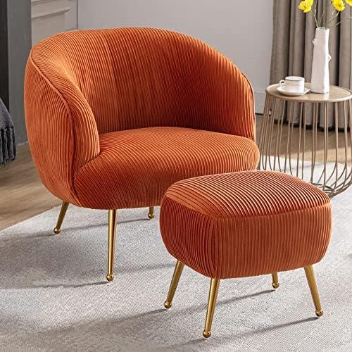 This modern accent chair paired with a cozy footrest is designed to provide exceptional comfort and style in any space. Featuring an ergonomic barrel shape with well-padded cushioning, it invites you to relax whether you’re reading a book, watching television, or simply enjoying a moment of solitude. Its dimensions make it suitable for various room settings—think of it in your living room, bedroom, or office. The soft velvet upholstery adds a touch of sophistication, while the armrests provide added support for your back.