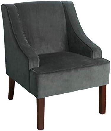 HomePop Velvet Swoop Arm Living-Room-Chairs, Dark Grey