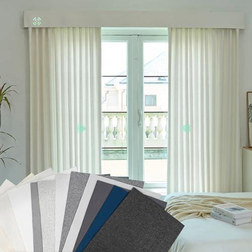 The innovative design features of this product make it an excellent choice for those looking to enhance their smart home experience. These curtains can easily be integrated with voice assistants like Alexa and Google Home, allowing for seamless voice control. The ability to customize fabric, with a focus on light colors, ensures that the curtains can complement various interior styles while providing practical thermal insulation. The product also comes with a measuring guide, enabling consumers to accurately specify the dimensions required for their windows.