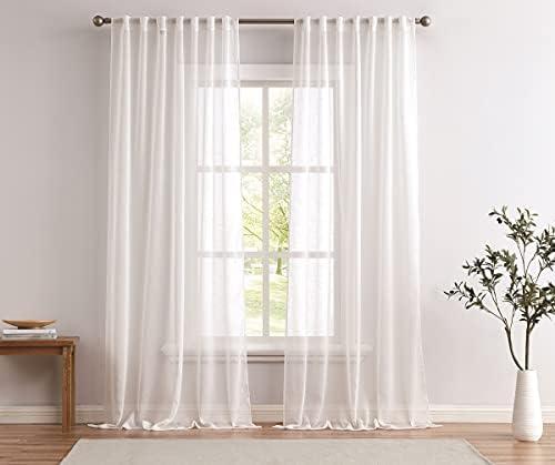 CANNON – Textured Sheer Window Panel Pair with Rod Pocket (50” x 96”) – Durable Material – White
