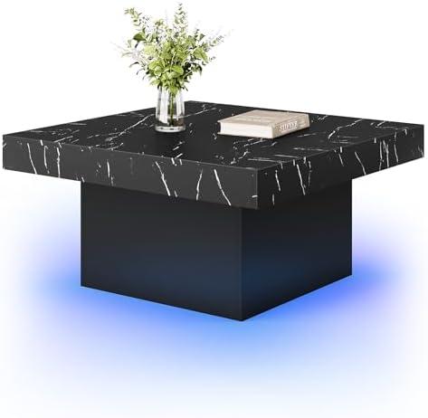 Modern Square Coffee Table with LED Lights and Faux Marble Finish