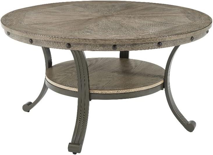Powell Linon Franklin Metal and Wood Round Coffee Table in Pewter