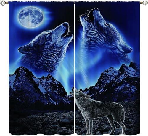 Wolf Blackout Curtains Home Decor,The Wolf Howls at The Moon at Night ⁤Rod Pocket Thermal Insulated Drapes Darkening Window Curtain for Girls Boy Bedroom Living Room 63 x 63 Inch