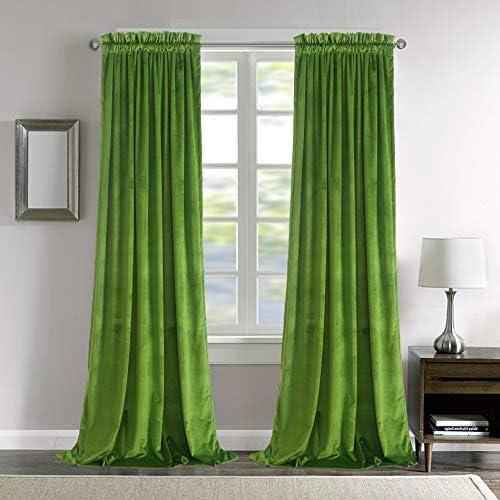 Roslynwood Living‌ Room Block Light Velvet Curtains – Sound Reducing Heavy Matt⁢ Solid Rod Pocket Panels Drapes /52Wx63L Fresh Green, ⁤2 Panels