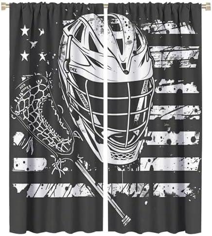 Retro American Flag Lacrosse Curtains – ⁢Abstract Modern Sports Theme Lacrosse Rod Pocket Window⁢ Blackout Curtain ⁤Panels,Elegant Curtains & Drapes for Living Room,Bedroom 2 Panels 54″L x‍ 21″W