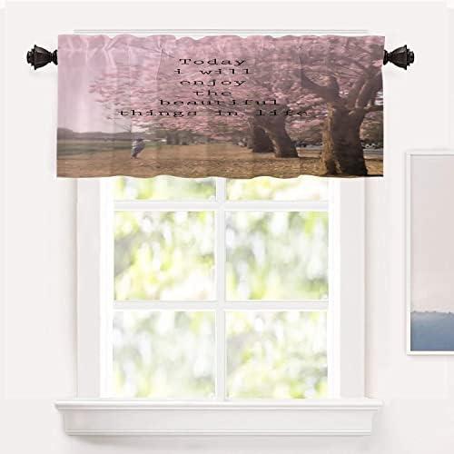 Shrahala Quote Flower​ Pink Inspirational Kitchen ‌Valances, Motivational ⁤Half Window Curtain Window Treatment Multilayer Polyester Blackout for Living Room Bathroom ​52 x 18 in