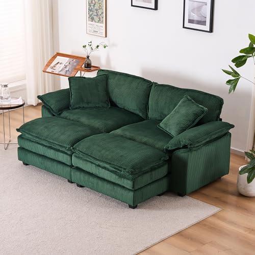 While this sofa brings numerous advantages, it does have some drawbacks. The assembly requires no special tools, but some users may find the weight of 156 pounds cumbersome while setting it up. Although the corduroy fabric is easy to maintain, it may require more frequent cleaning to remove pet hair or dust. Additionally, the oversized design is perfect for spacious rooms, but may not fit well in smaller areas. this product combines comfort and style, offering value for those looking to enhance their living space.
